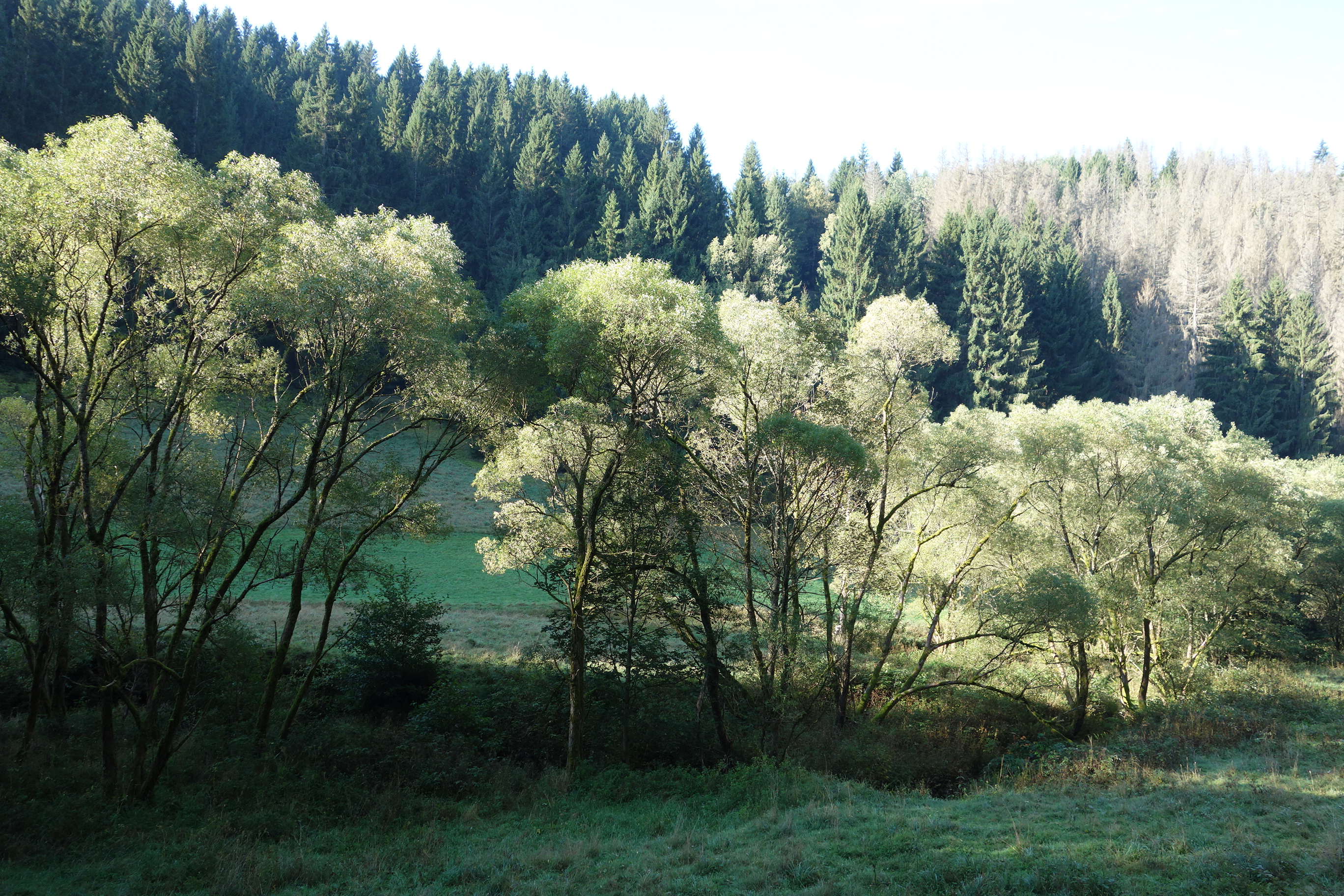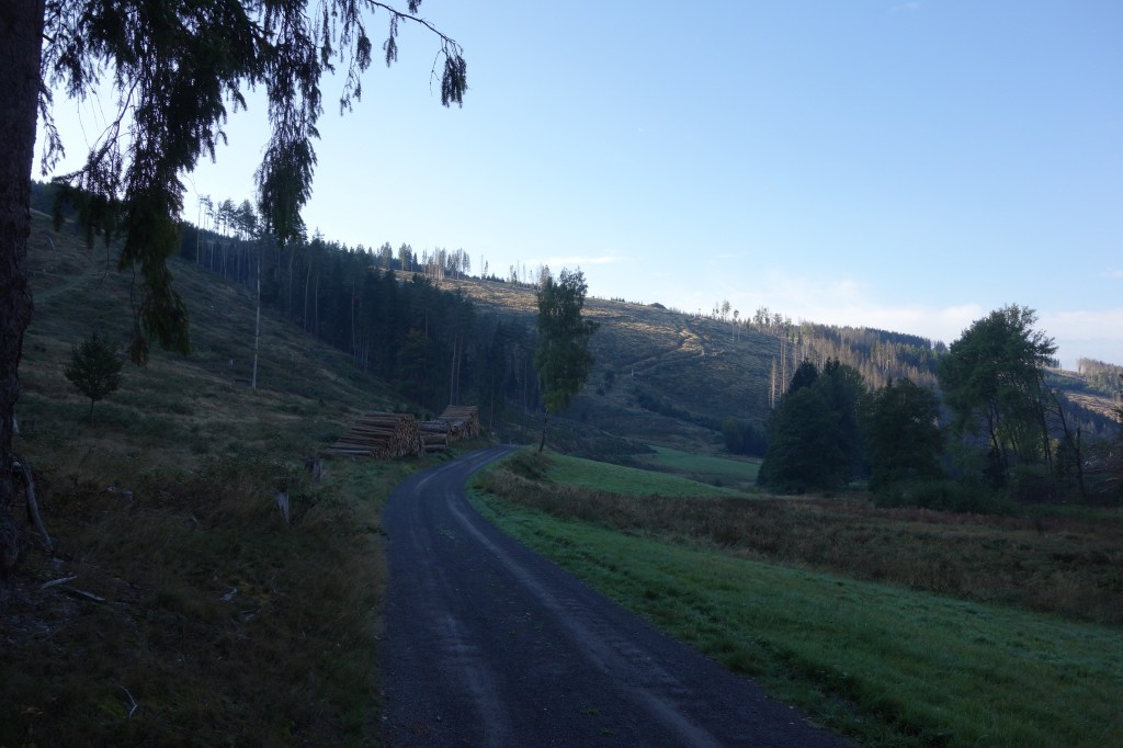 Mein Glaube an Mondsichel und Venus, empirisch unterfüttertKleine Runde um die SchanzeHinter der Schanze ists wie Afrika.Haselnuß-Mispel-GespinstDann überstürzten sich die Ereignisse, und es war schon Dezember.Unter dem Vorwand, Bibliotheksbücher aus Erfurt holen / nach Erfurt bringen zu müssen, gehe ich jetzt oft durchs Tal der Weißen Schwarza.Die Hügel, ohnehin noch verwirrt von den Rodungen, staunen: So viele Bücher sind noch nie an ihnen vorübergetragen worden. Alles ist neu!Unterer TalgrundHeimweg aber ist immer …… und die lieblich enge Welt bleibt die unbegreifliche.